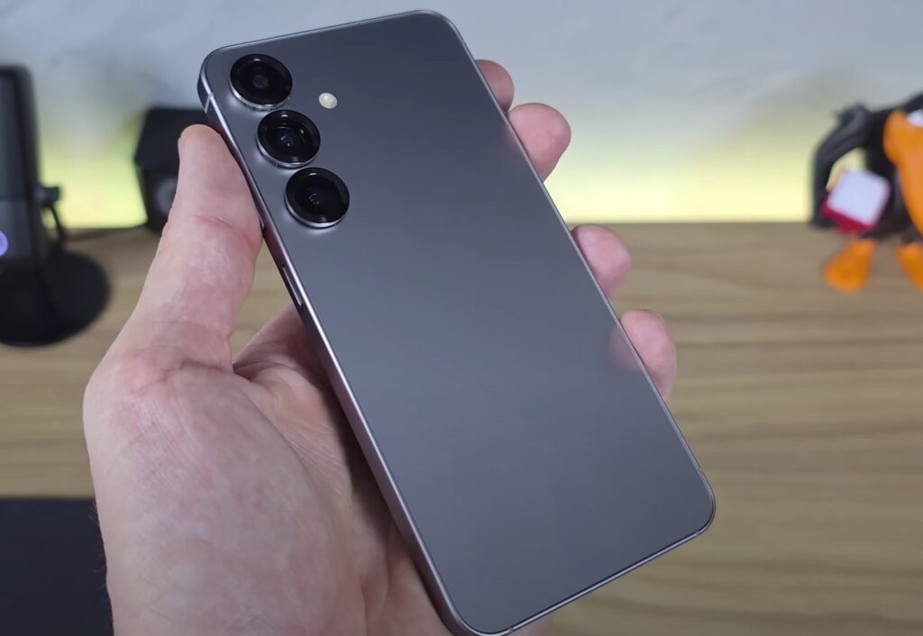 Na construção, a Samsung manteve o padrão de vidro na traseira e alumínio nas bordas. O acabamento transmite solidez, e a certificação IP68 garante proteção contra água e poeira. O design com anéis ao redor das câmeras divide opiniões: alguns acham elegante, outros consideram exagerado. O importante é que traz identidade visual, e isso é algo que nem todas as marcas conseguem manter ao longo das gerações.