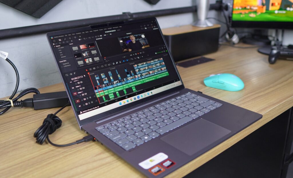 Para fluxo de trabalho cotidiano — Photoshop leve, edição de vídeo simples no CapCut, Canva, multitarefa pesada — o Slim 5 se comportou muito bem. A combinação entre processador eficiente, boa tela e sistema silencioso compõe uma máquina confortável para estudo e trabalho.